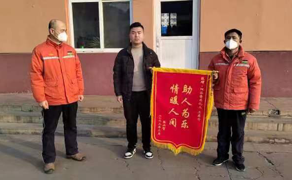 2月3日上午,市民張先生來(lái)到第五化肥廠(chǎng),將一面印有“助人為樂(lè) 情暖人間”的錦旗送到五廠(chǎng)員工王東升的手中,并衷心感謝到:“真的非常感謝你,多虧了你,我爸才能平安回家”。