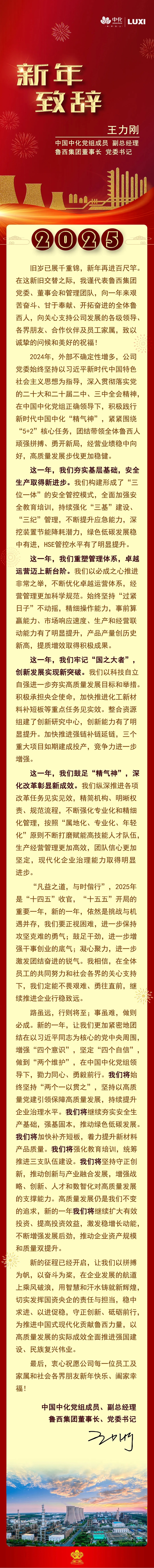 中國中化黨組成員、副總經(jīng)理,魯西集團董事長、黨委書記王力剛新年致辭